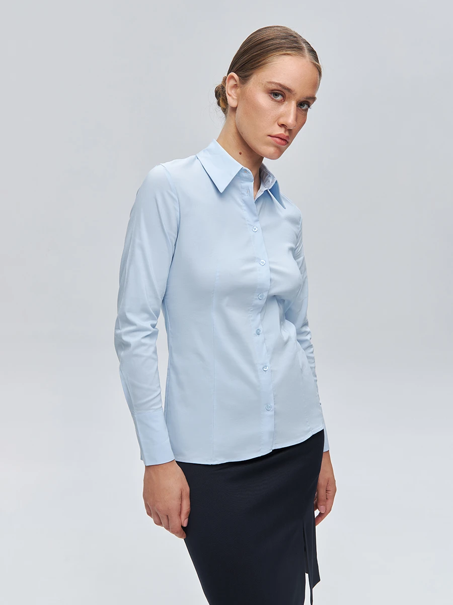 Рубашка из смесового хлопка голубого цвета.