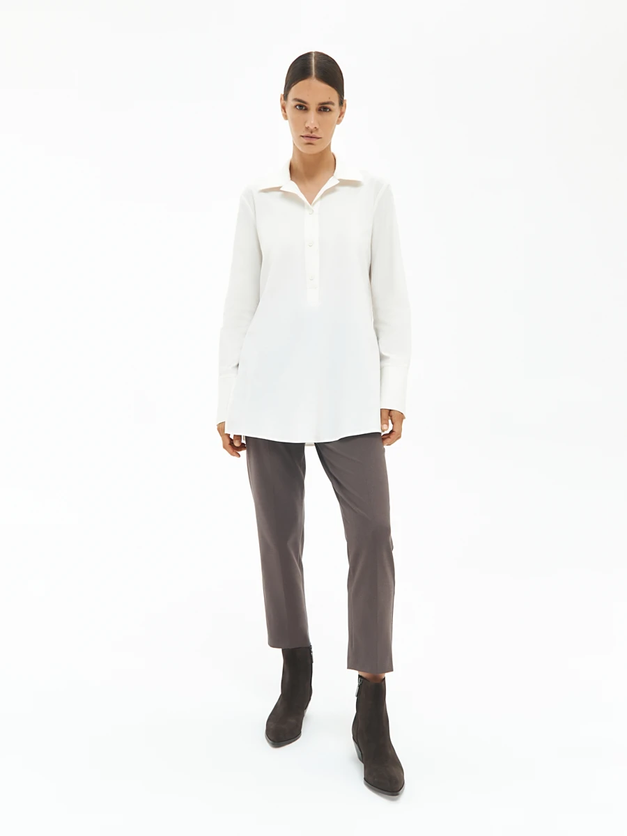 Укороченные классические брюки на высокой посадке в холодном темно-бежевом оттенке. Мягкая костюмная ткань премиального качества приятно ложится к телу и комфортно носится на протяжении всего дня. Широкий пояс по шлевками по периметру создает акцент на талии, а заутюженные стрелки по всей длине визуально стройнят и вытягивают силуэт. Спереди имеются функциональные карманы, а сзади - декоративные.