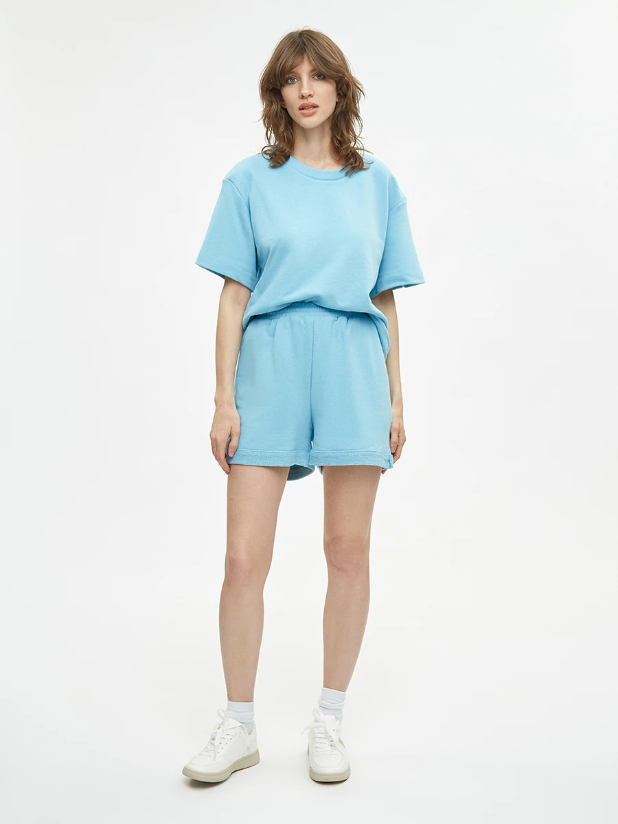 Шорты прямого кроя из смесового хлопка голубого цвета.
