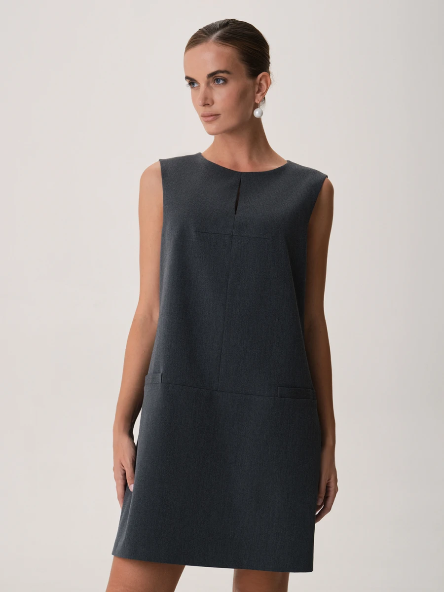 Базовый однотонный сарафан в спокойном сером оттенке - идеальное решение для простых и стильных луков. Лаконичный дизайн изделия с легкостью впишется в любой гардероб. Можно носить сарафан как самостоятельную единицу или сочетать с объемными свитерами и рубашками. Все детали данной модели выполнены в стиле минимализма. Декоративные карманы и аккуратный разрез в зоне декольте делают образ более интересным, но при этом не перегружают его.