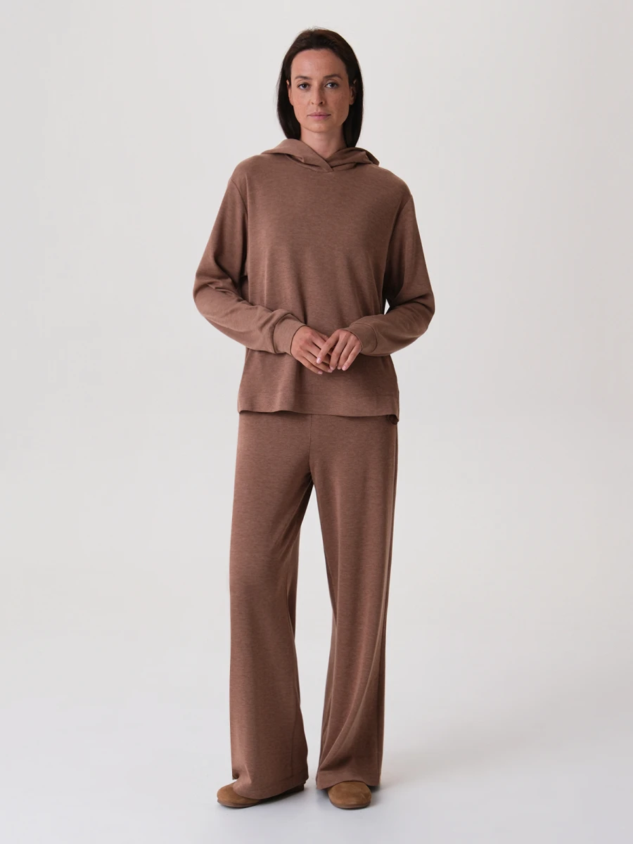 Однотонное теплое худи oversize кроя в трендовом оттенке капучино. Данная модель идеально подойдет для повседневных образов в прохладную погоду. Объемный капюшон и вместительные передние карманы позволяют дополнительно укрыться от холода. Низ рукавов оснащен эластичной вставкой. Можно стилизовать худи с синими джинсами или собрать монохромный лук с трикотажными брюками из новой коллекции.