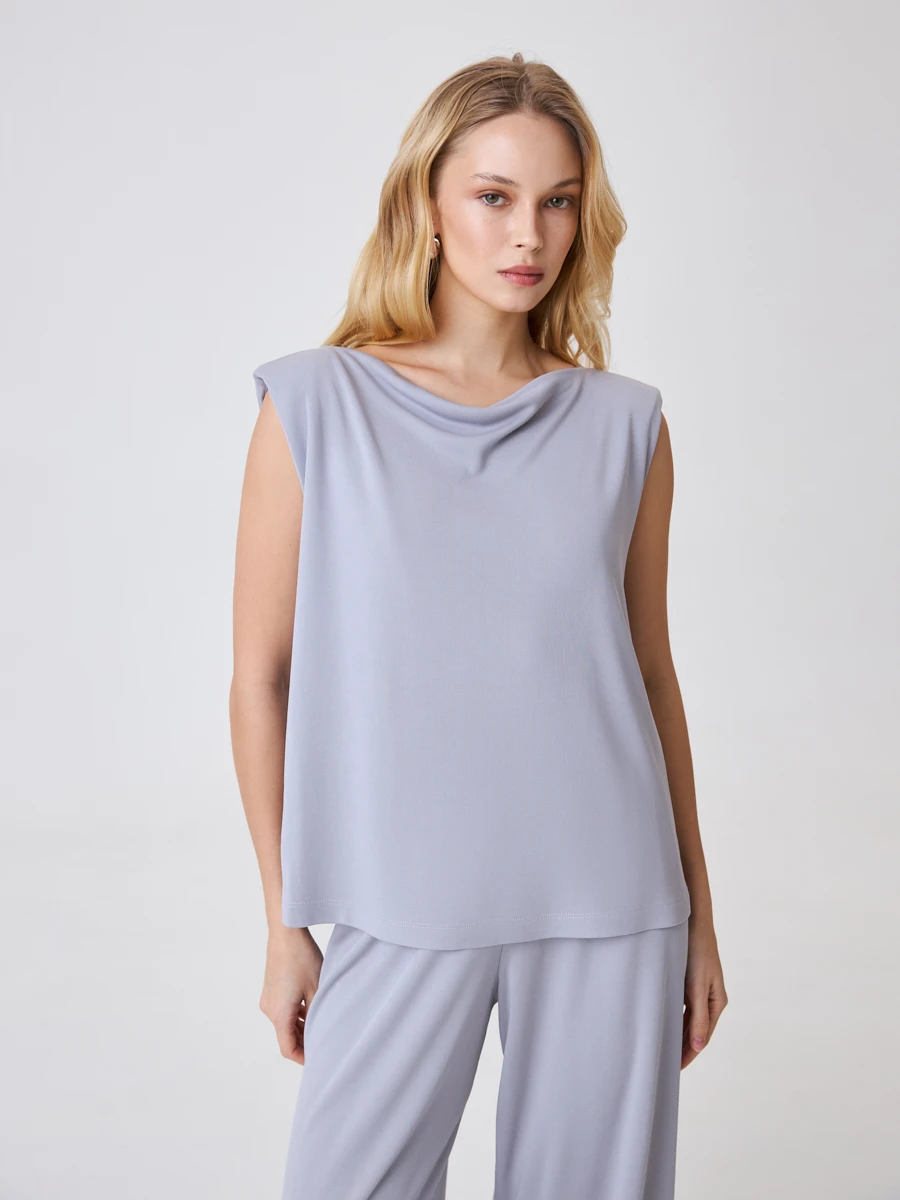 Однотонная трикотажная майка в приятном светло-сером оттенке. Модель свободного прямого кроя станет стильным и практичным дополнением повседневного гардероба. Вырез горловины «лодочка» открывает линию ключиц, благодаря чему образ всегда будет выглядеть женственно и элегантно. Стандартная длина по бедра позволяет носить майку в заправленном виде и навыпуск. Можно составить романтический лук с атласной юбкой длины миди или стилизовать более расслабленный аутфит с брюками.