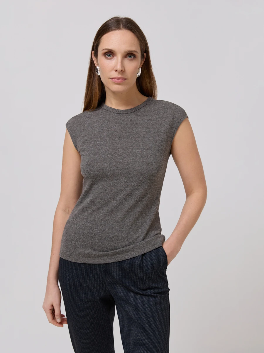 Базовый топ прилегающего силуэта с круглой горловиной. Волокна вискозы делают материал более легким и воздушным.