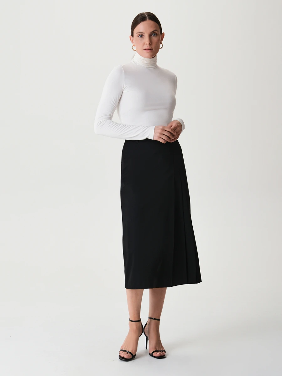 Белая однотонная водолазка - это идеальная база для стильных и простых образов. Модель выполнена из эластичной трикотажной ткани премиального качества. Приятно ложится к телу, не просвечивает и отлично ведет себя в носке. Благодаря особому крою воротник не сковывает движение и позволяет регулировать его высоту. Можно сочетать водолазку с классическими брюками и юбками любой длины, а также дополнять образы жакетами и объемными свитерами.
