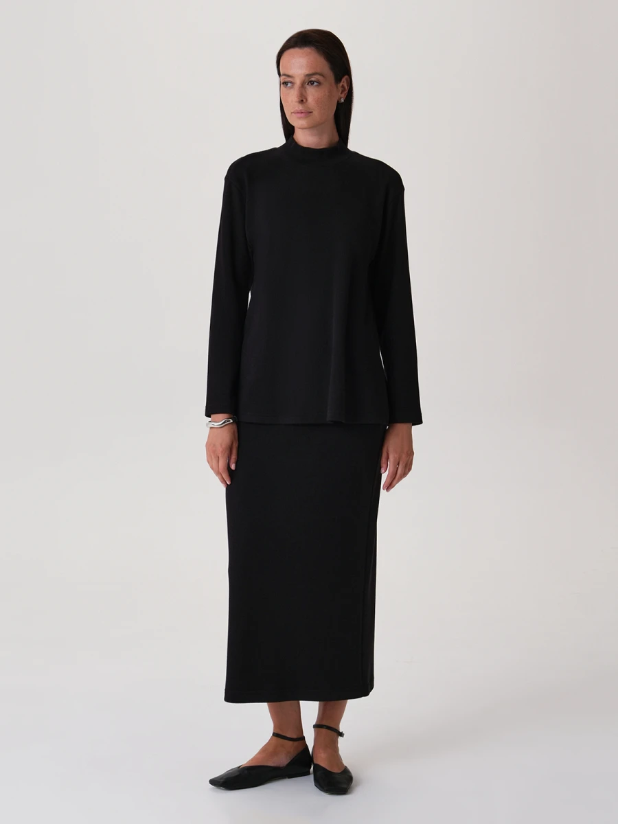 Черная однотонная водолазка из мягкого трикотажа - идеальная база для теплых уютных образов. Особенности кроя делают модель максимально комфортной в носке. Воротник-стойка свободно ложится к шее и не сковывает движение, а полуприлегающий крой деликатно скрывает недостатки. Акцентная деталь изделия - аккуратные разрезы в боковых швах по низу. Можно стилизовать водолазку с джинсами и трикотажными брюками или носить в заправленном виде с юбками.