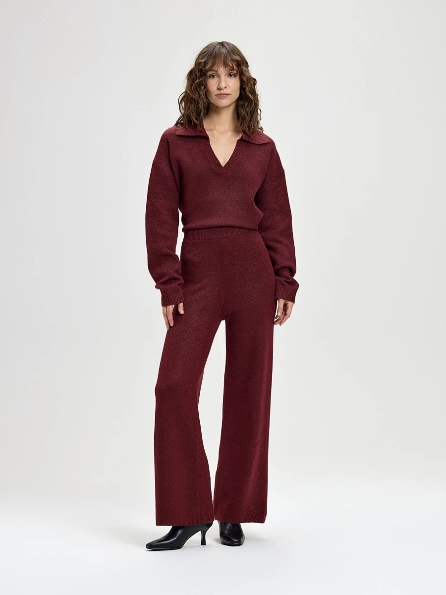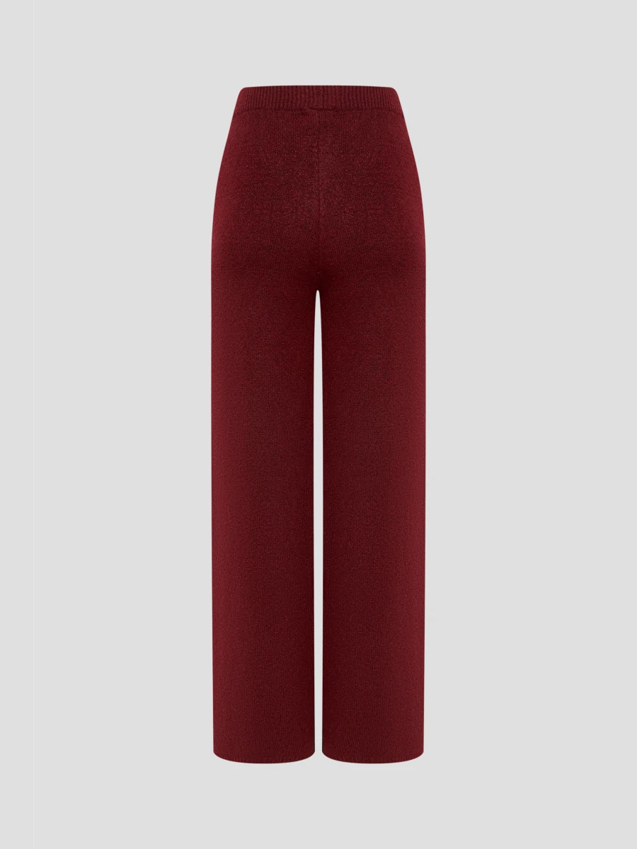Мягкое, приятное к телу полотно, в составе которого — натуральная шерсть и вискоза, обеспечивает тепло и комфорт. Нейлон добавляет изделию прочности и износостойкости, а акрил — дополнительного тепла и объёма. Бордовые трикотажные брюки — эластичные, невероятно мягкие и тёплые. Идеальная пара для создания уютных осенне-зимних образов в стиле casual и smart-casual.