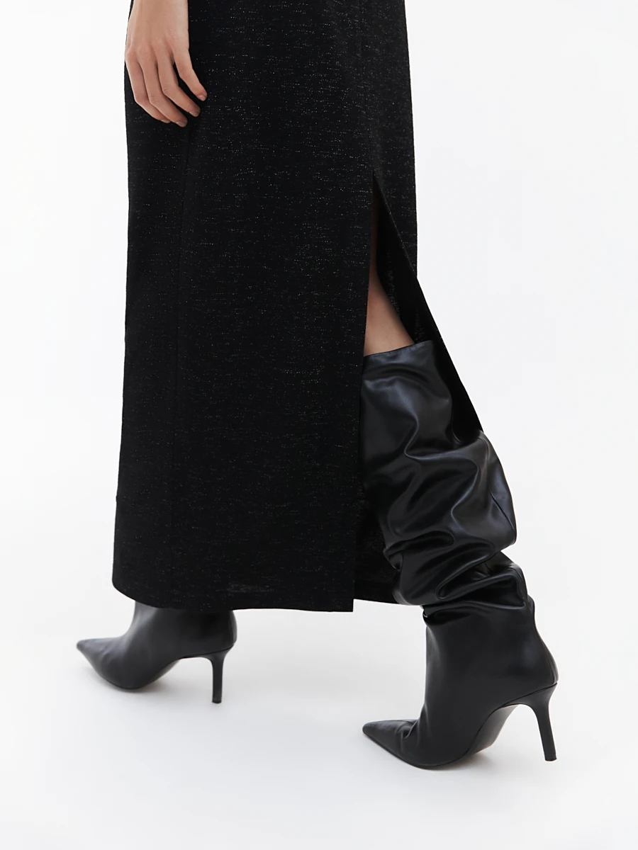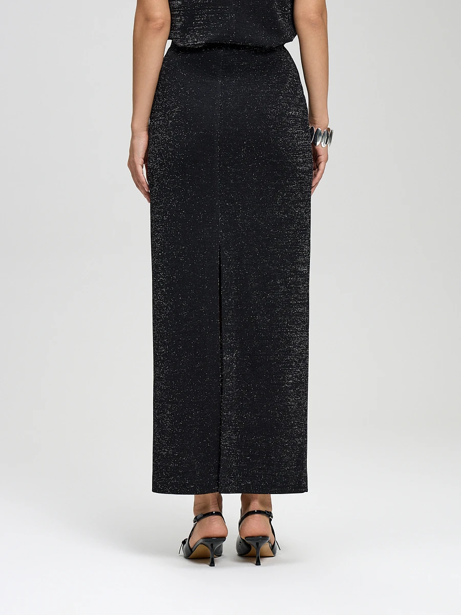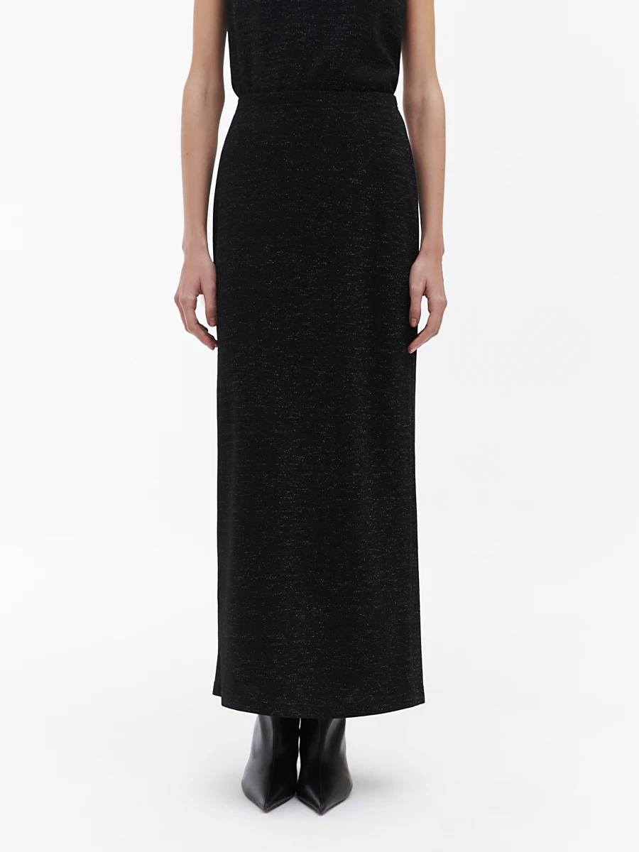 Черная трикотажная юбка длины макси - беспроигрышное сочетание элегантности и женственности. За счет анатомической высокой посадки модель идеально сядет по фигуре и подчеркнет талию. Длина изделия и прямой крой визуально вытягивают силуэт, а акцентный разрез сзади делает образ запоминающимся, хоть и сдержанным. Юбка выполнена из мягкого трикотажа премиального качества.