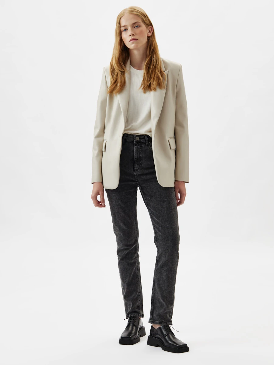 Однобортный удлиненный жакет из экокожи