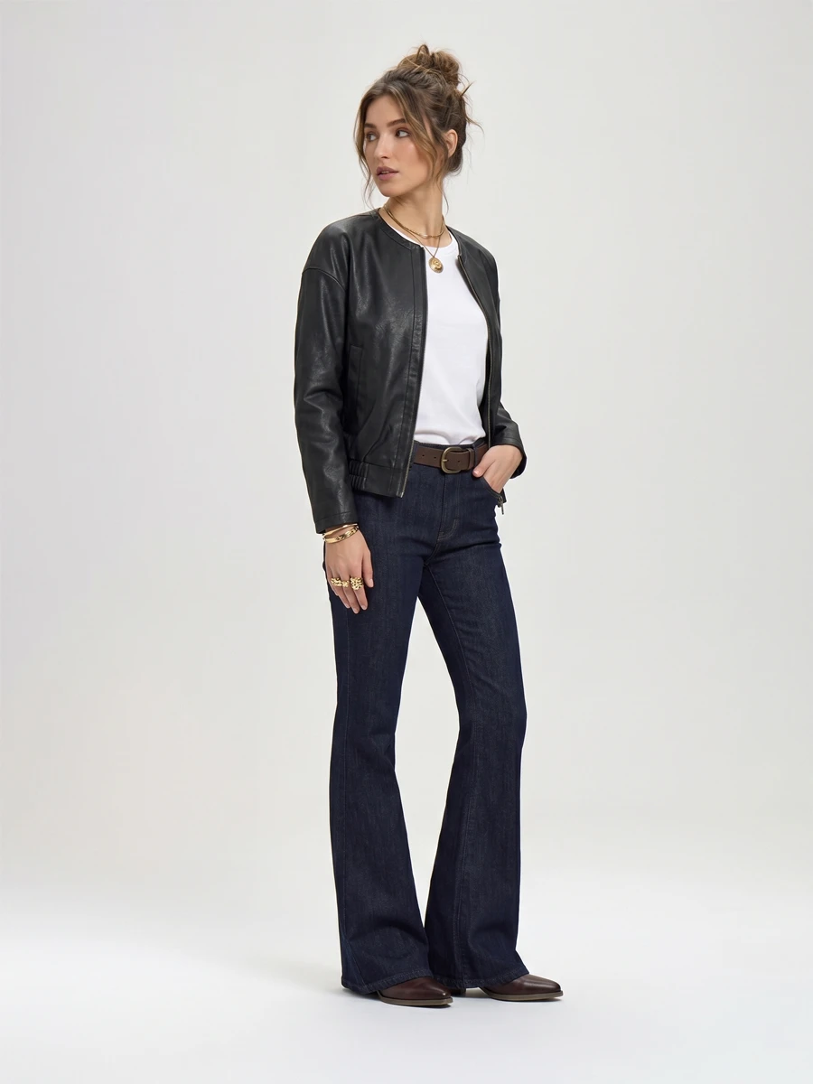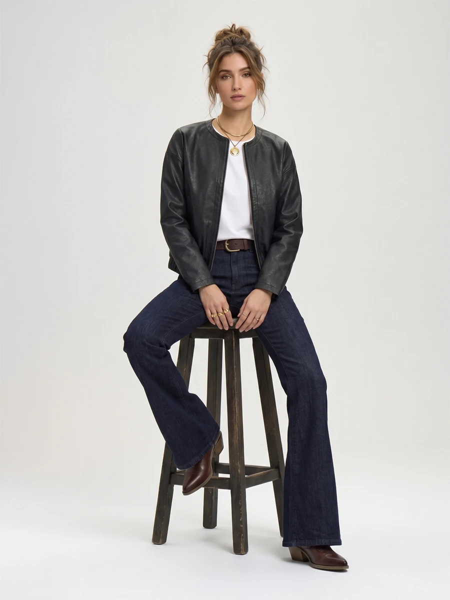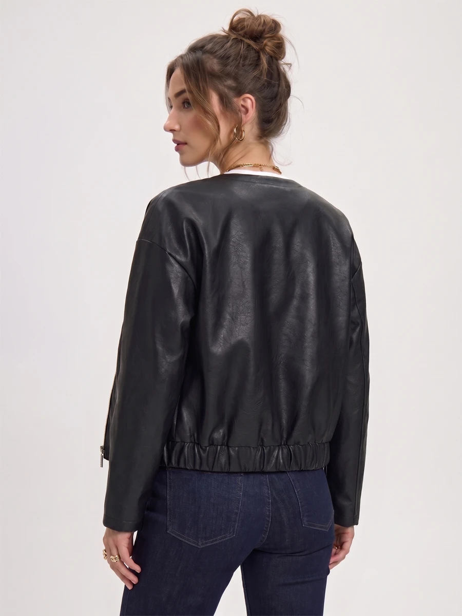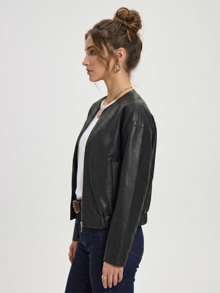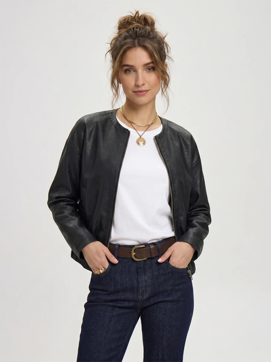 Стильный бомбер из экокожи станет отличным дополнением повседневных луков с ноткой дерзости. Высококачественная ткань с характерным деликатным блеском отлично смотрится в сочетании с разными материалами и текстурами. Но низу изделия проходит эластичная резинка и образует аккуратную сборку. Бомбер имеет круглый вырез горловины и застегивается на молнию. Можно смело интегрировать его как в образы с джинсами скинни, так и стилизовать с женственными юбками.